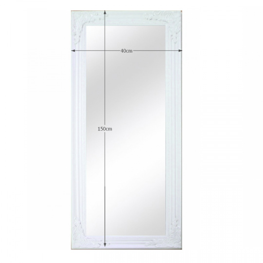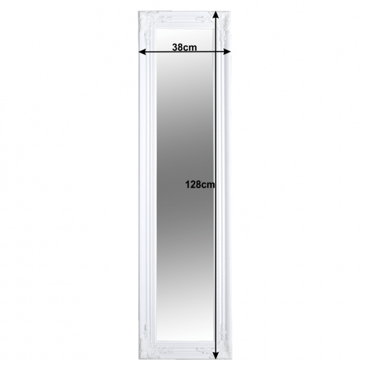 Elegantní zrcadlo s dřevěným rámem bílé barvy. Rozměry zrcadla 40x150 cm.