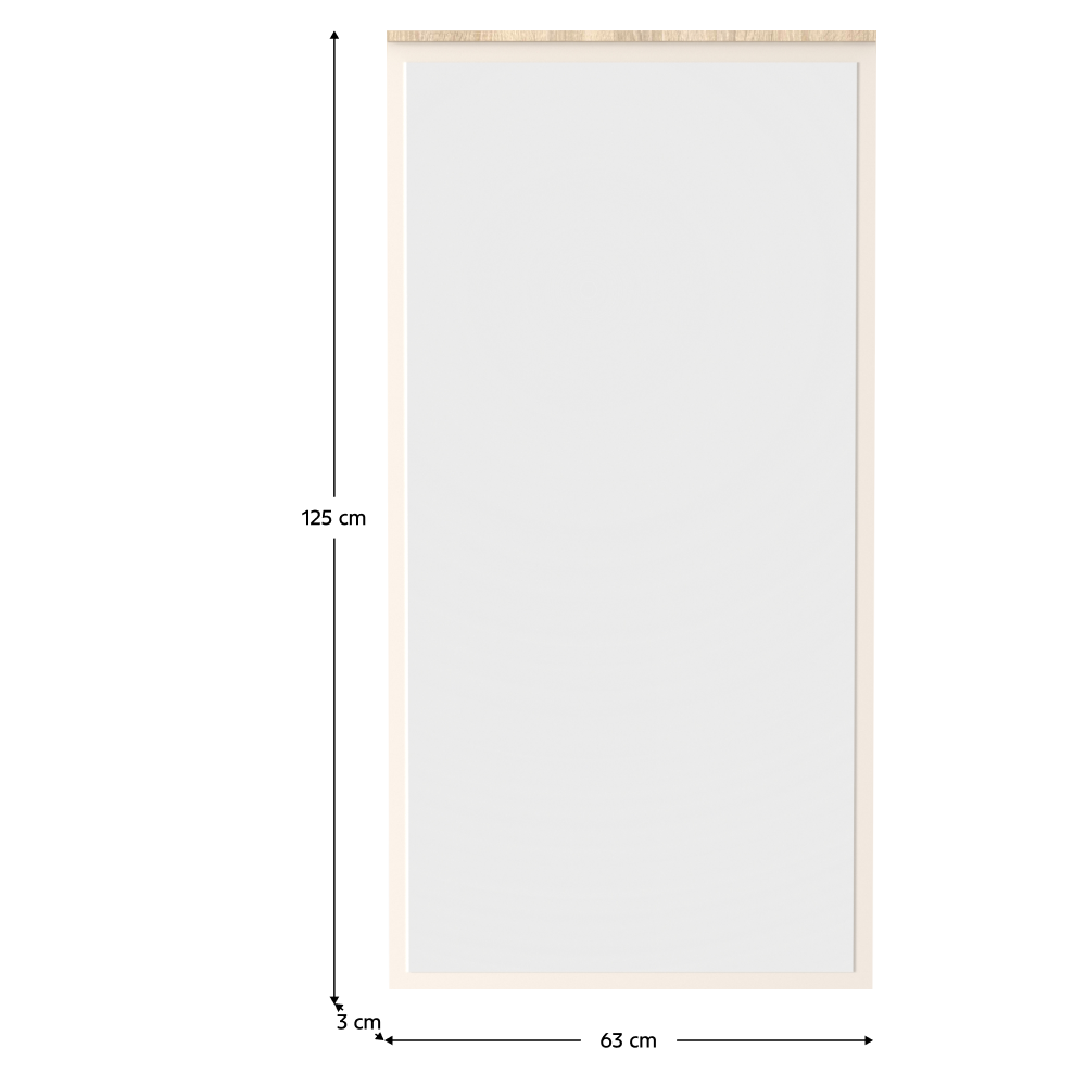 Materiál: laminovaná DTD Barva: dub sonoma/kašmír Rozměry (ŠxHxV): 63x3x125 cm Tloušťka materiálu DTD: 1,6-2,2 cm Se sklem Moderní design Doporučujeme připevnit ke zdi Dodáváno v demontu