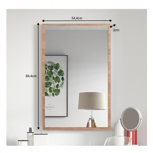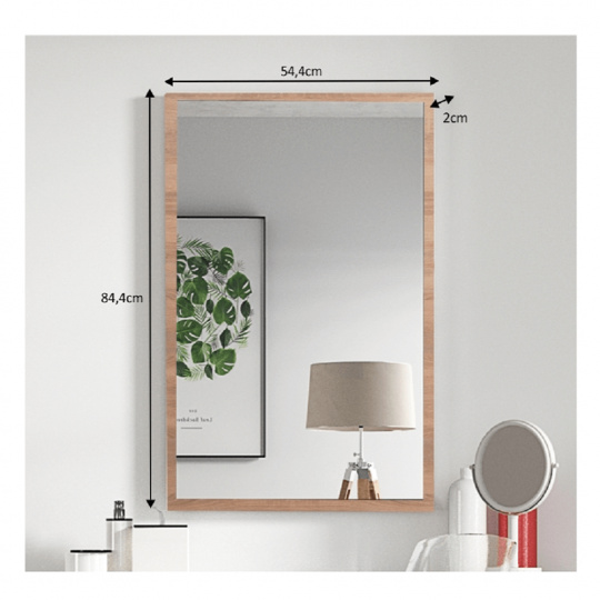 Moderní zrcadlo VIOLET Materiál: DTD laminovaná Barva: dub sonoma Rozměry (ŠxHxV): 54,4x2x84,4 cm Tloušťka materiálu: 16 mm