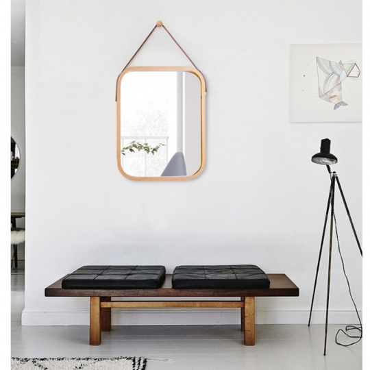 Jednoduché zrcadlo s bambusovým rámem LEMI 2 Materiál: lakovaný bambus/sklo Barva: přírodní Rozměry zrcadla (ŠxHxV): 33x1,5x40,5 cm Tloušťka skla: 3 mm Dodávaná s dřevěným háčkem. Zavěšení zrcadla: úchytka z hnědé ekokůže Dodávané v monte.