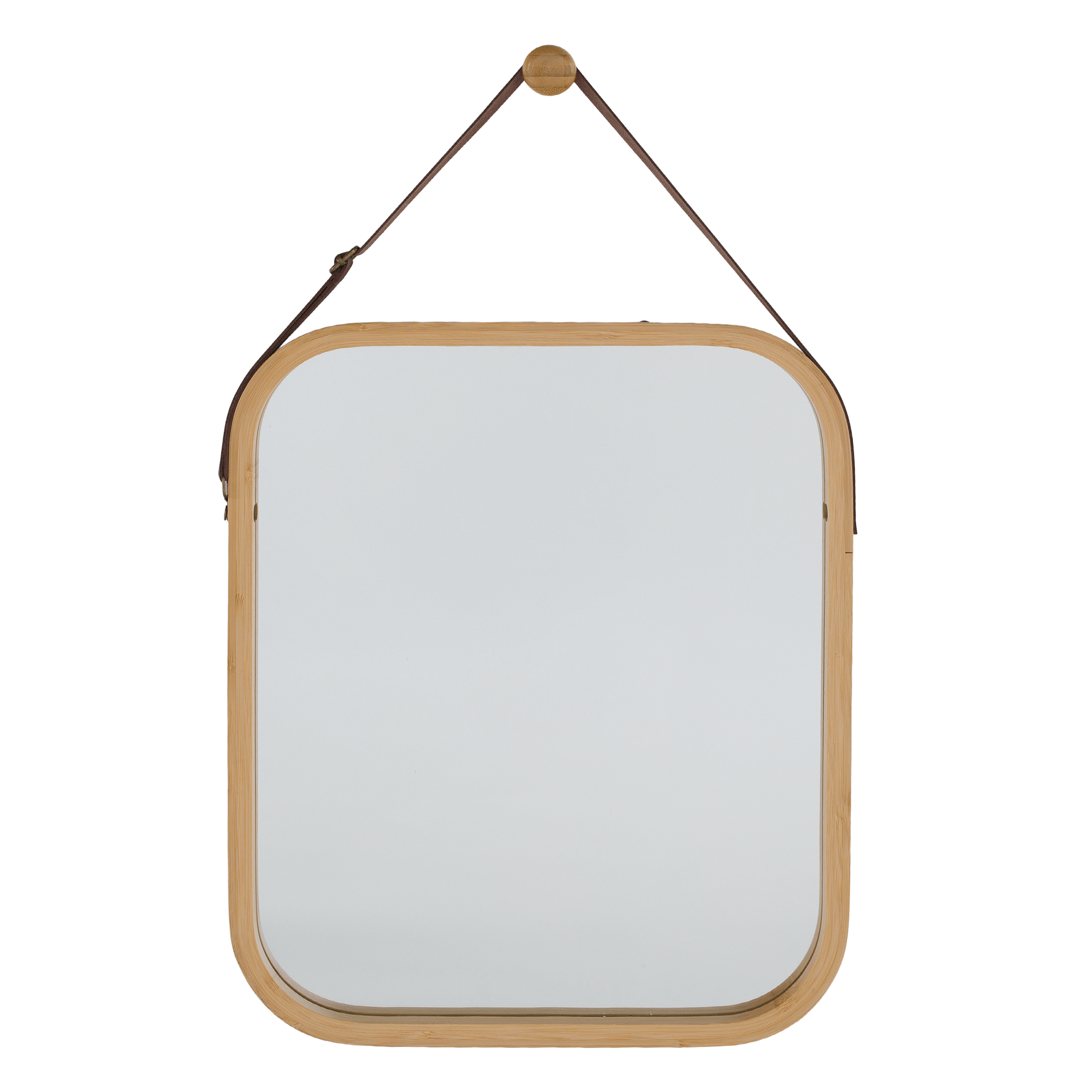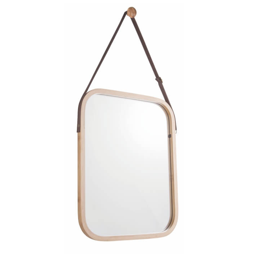 Jednoduché zrcadlo s bambusovým rámem LEMI 2 Materiál: lakovaný bambus/sklo Barva: přírodní Rozměry zrcadla (ŠxHxV): 33x1,5x40,5 cm Tloušťka skla: 3 mm Dodávaná s dřevěným háčkem. Zavěšení zrcadla: úchytka z hnědé ekokůže Dodávané v monte.