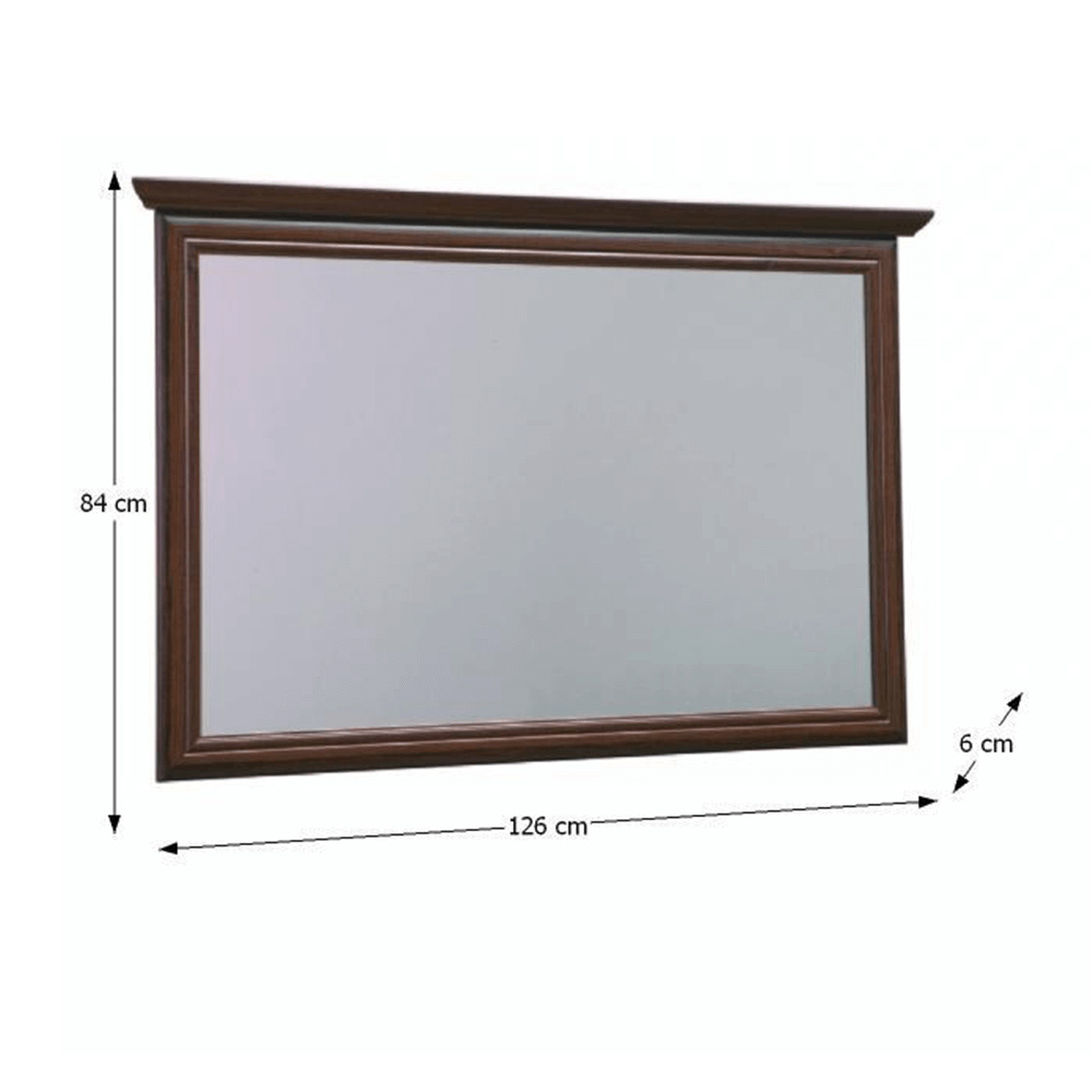 Zrcadlo KC2 KORA Materiál: laminovaná DTD, MDF Barevné provedení: samoa king. Rozměry (ŠxHxV): 126x6x84 cm Tloušťka materiálu korpus: 15 mm Tloušťka materiálu vrchní desky: 22 mm Dodávané v demontu.
