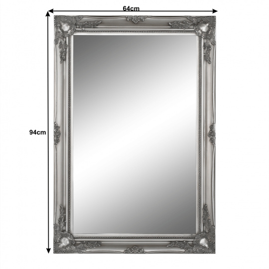 Zrcadlo MALKIA TYP 6 se stříbrným dřevěným rámem. Rozměry (ŠxV): 60x90 cm Hmotnost: 6.13kg